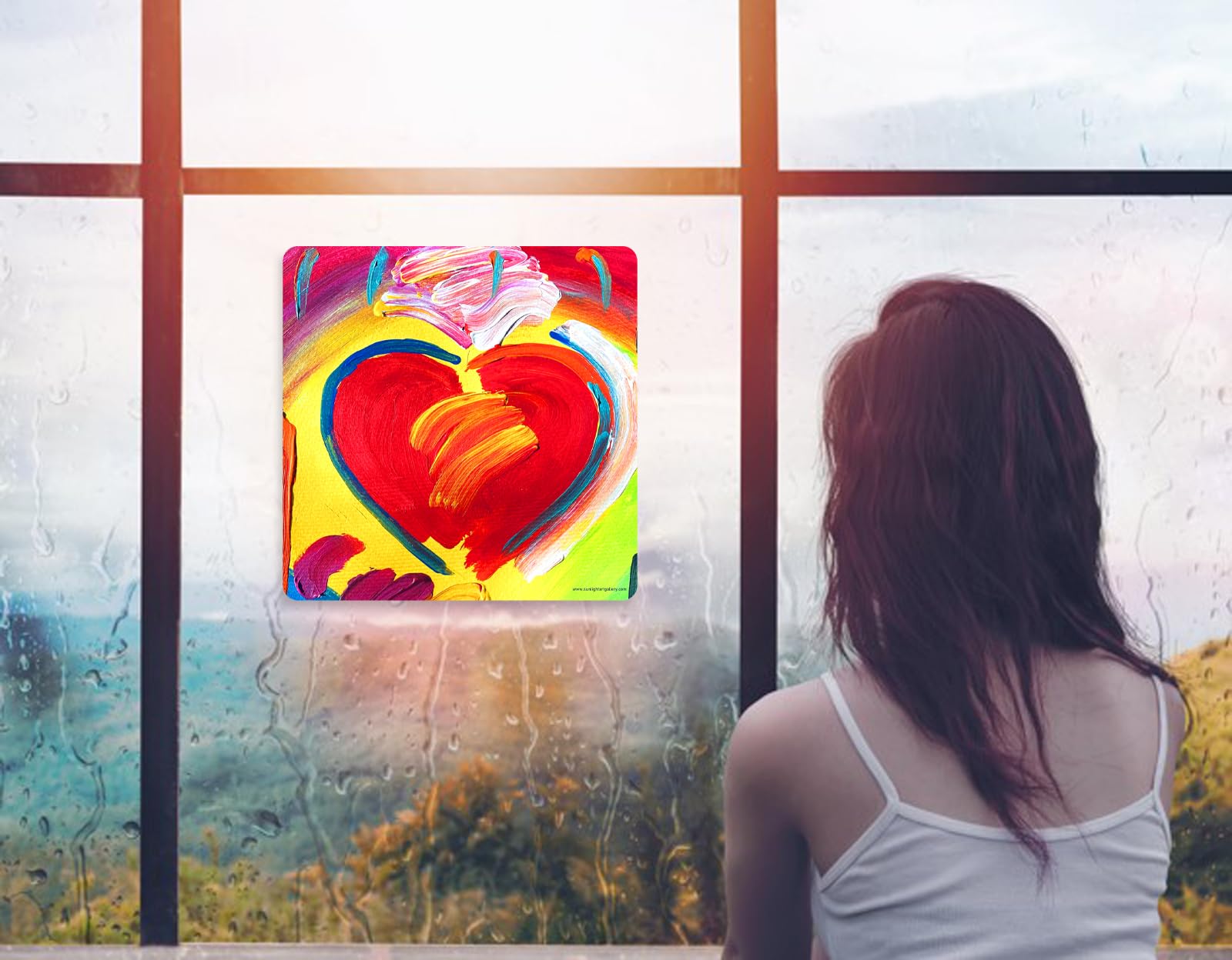 Bursting with color, the sunlight streams through each Panel generating explosive imagery throughout your room. Just place it near a window or stick it on with the suction cups provided, and watch the sunlight bring it to life. Our standard size of Sunlight Art® Panels is 11×11”, however, you can order any Panel in a custom size – 8×8”,15×15” or larger – on the site here. Each Sunlight Art® mixed-media image is printed exclusively on transparent panels.