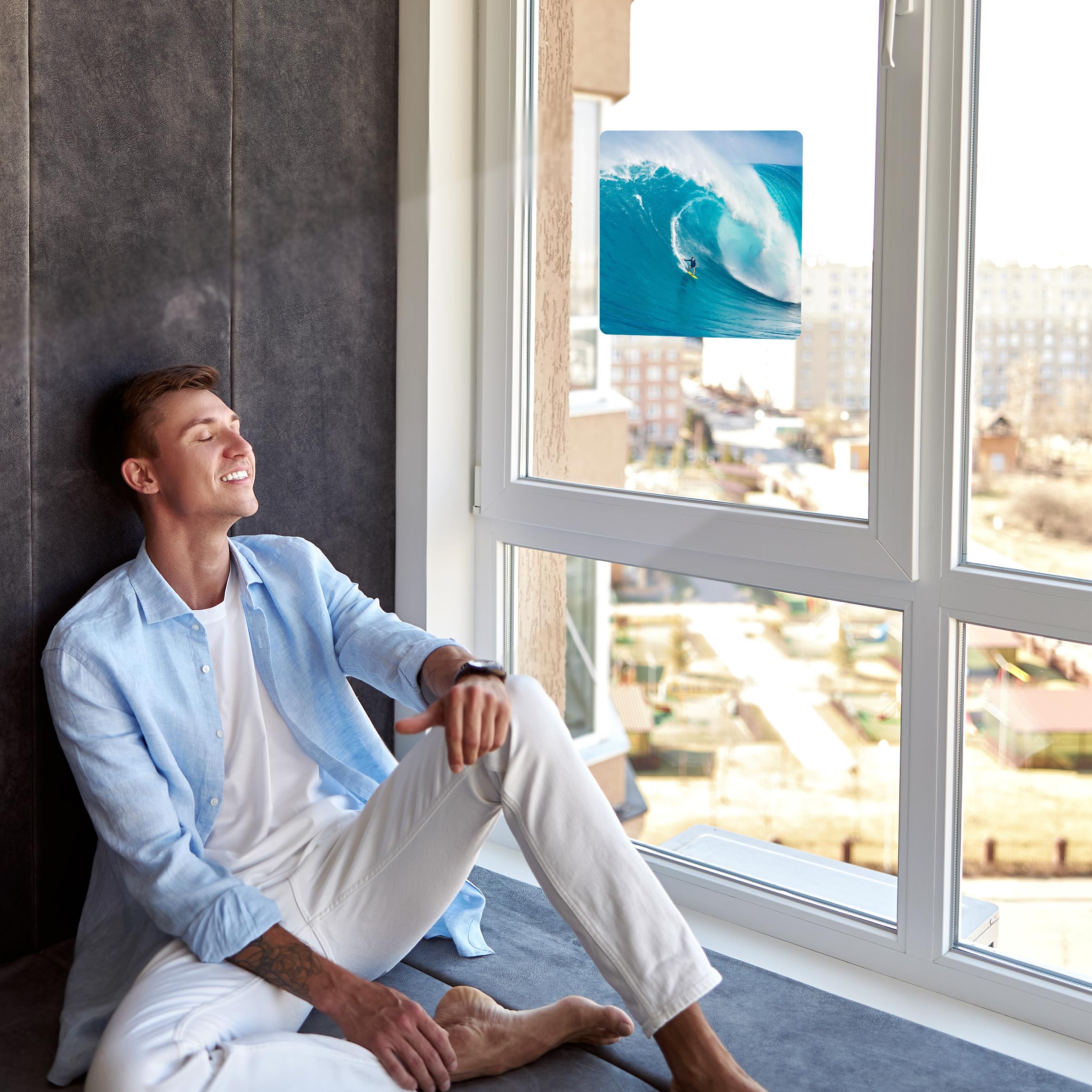 Bursting with color, the sunlight streams through each Panel generating explosive imagery throughout your room. Just place it near a window or stick it on with the suction cups provided, and watch the sunlight bring it to life. Our standard size of Sunlight Art® Panels is 11×11”, however, you can order any Panel in a custom size – 8×8”,15×15” or larger – on the site here. Each Sunlight Art® mixed-media image is printed exclusively on transparent panels.